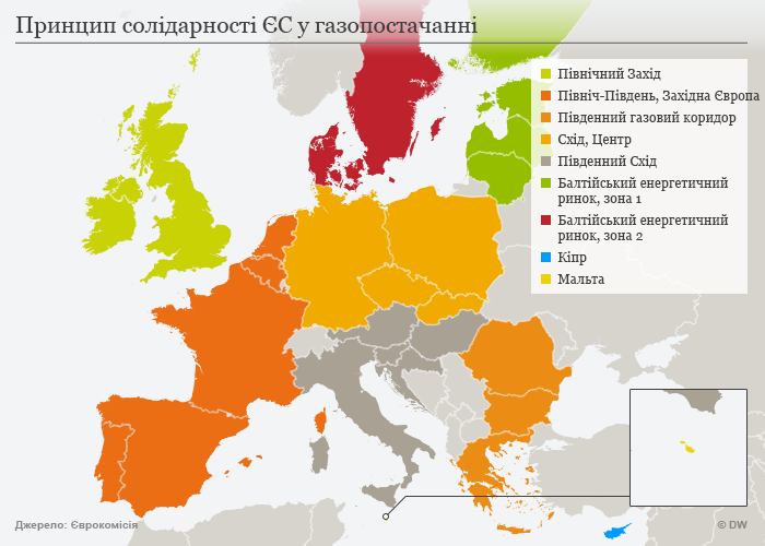 Внутри каждой из них страны-члены обязуются выработать механизмы взаимопомощи в подобных случаях. «В случае, если возникнет острый дефицит газа, соседи помогут в обеспечении энергоснабжения домашних хозяйств и всех критически важных инфраструктурных объектов, включая больницы, школы, а также все системы безопасности», — пояснила представительница Еврокомиссии.