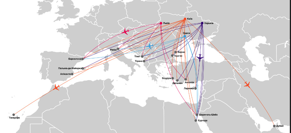 В Украине таковыми являются — Турция, Египет, Черногория, Болгария, Кипр, ОАЭ и другие. Преимущественно в эти страны планирует осуществлять полеты новый авиаперевозчик.