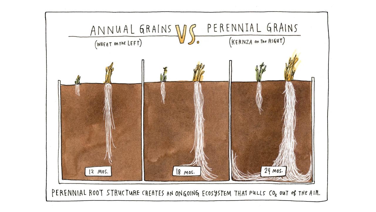 Пшеница, рис, кукуруза, овёс, ячмень, рожь и другие хлебные злаки — однолетние растения, которые нужно сажать каждый год. Дикорастущие растения, напротив, являются многолетними: они расцветают каждое лето на протяжении целого десятилетия. Многолетние растения имеют более развитую корневую систему и менее требовательны.