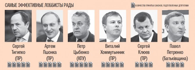 По результативности лидируют представители парламентского большинства — заместители председателя ПР Артем Пшонка, Сергей Тигипко, а также глава комитета по вопросам социальной политики и труда Петр Цибенко (КПУ).
