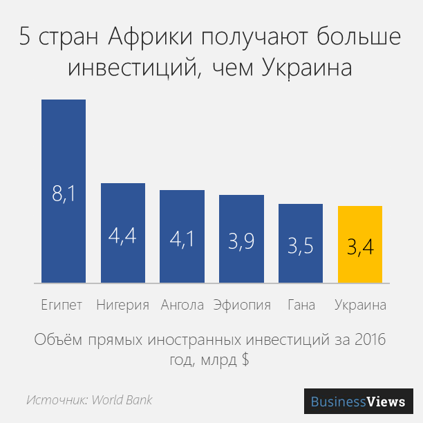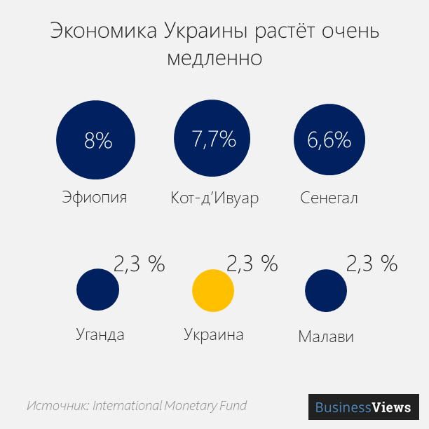 В мире очень серьезная конкуренция, экономики наших африканских конкурентов растут быстро, и с темпами роста в 2,3% Украина занимает неприглядное место в мире даже если сравнивать с Африкой. Более бедные государства — Эфиопия, Кот-д«Ивуар или Сенегал — развиваются быстрее Украины.