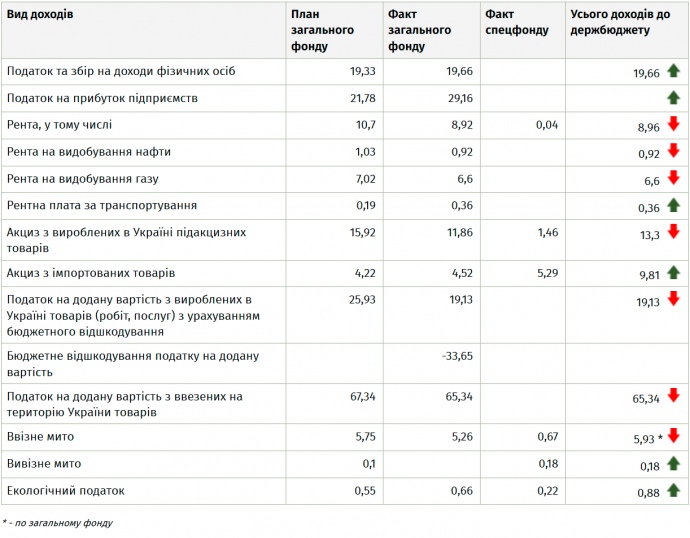 Не выполняется план ни по таможенным, ни по налоговым поступлениям. Так, Государственная фискальная служба дала 167,4 млрд. грн вместо запланированных 173,6 млрд. грн. Не хватило 9,5 мдрд грн или 3,6% для выполнения плана.