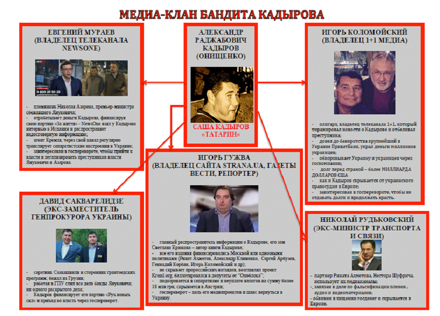 Компании Кадырова регулярно выигрывали тендеры в государственной компании «Центрэнерго» на поставку газа, часть средств шла на дискредитацию политиков в СМИ и покупку голосов в Верховной Раде.