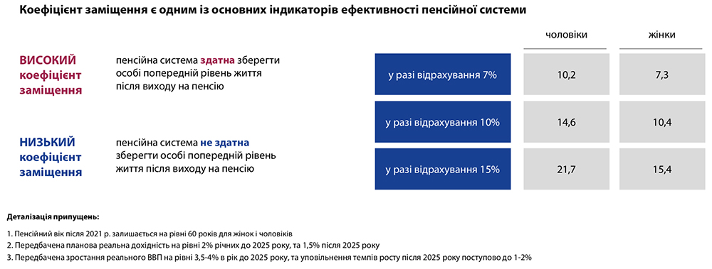 Одна из целей введения обязательного накопительного уровня — создать дополнительный источник финансирования пенсий и не допустить падения коэффициента замещения. Последний отражает уровень замены зарплаты пенсией. В мире стандартный уровень КЗ — 40%, то есть пенсионная выплата составляет 40% зарплаты.