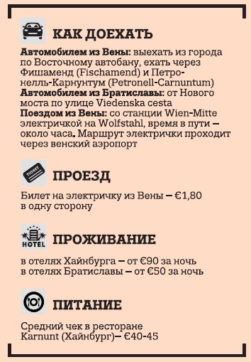 От Братиславы до Вены — всего 60 километров. Еще недавно обе столицы были разделены железным занавесом, но сейчас входят в джентльменский набор автотуриста, колесящего из Восточной Европы в Западную. А в 10 километрах от австрийско-словацкой границы путешественника встречает маленький, но живописный городок Хайнбург-на-Дунае. И хотя по количеству достопримечательностей он уступает столицам, не спешите проезжать мимо. Хайнбург не отнимет у вас много времени, зато расширит познания о средневековой и современной Европе и уж точно подарит массу впечатлений.