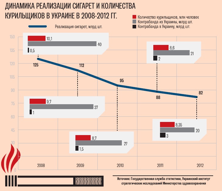 Но доля рынка сигарет без фильтра вырастет минимум на 5 % — с 12 % в декабре 2013 г. до 17 %, прогнозирует Когут. «5 % рынка — это 3,45 млрд шт. сигарет. В результате, поскольку ставки акциза для сигарет без фильтра существенно ниже [примерно в два раза], чем для продукции с фильтром, госбюджет недополучит около полумиллиарда гривен», — говорит он.