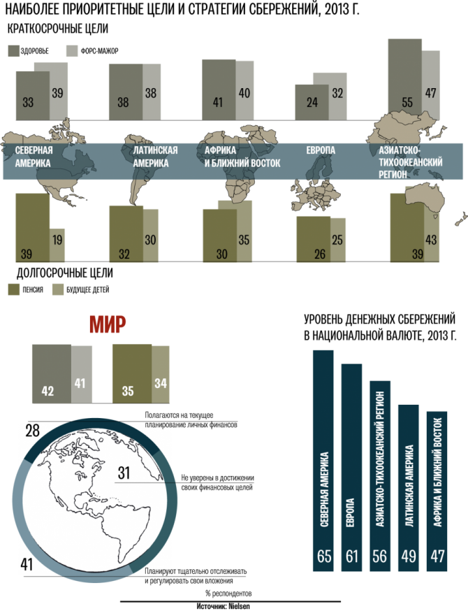 Главная задача экспертов Nielsen состояла в изучении глобальных и региональных тенденций по наиболее приоритетным краткосрочным и долгосрочным целям накопления.