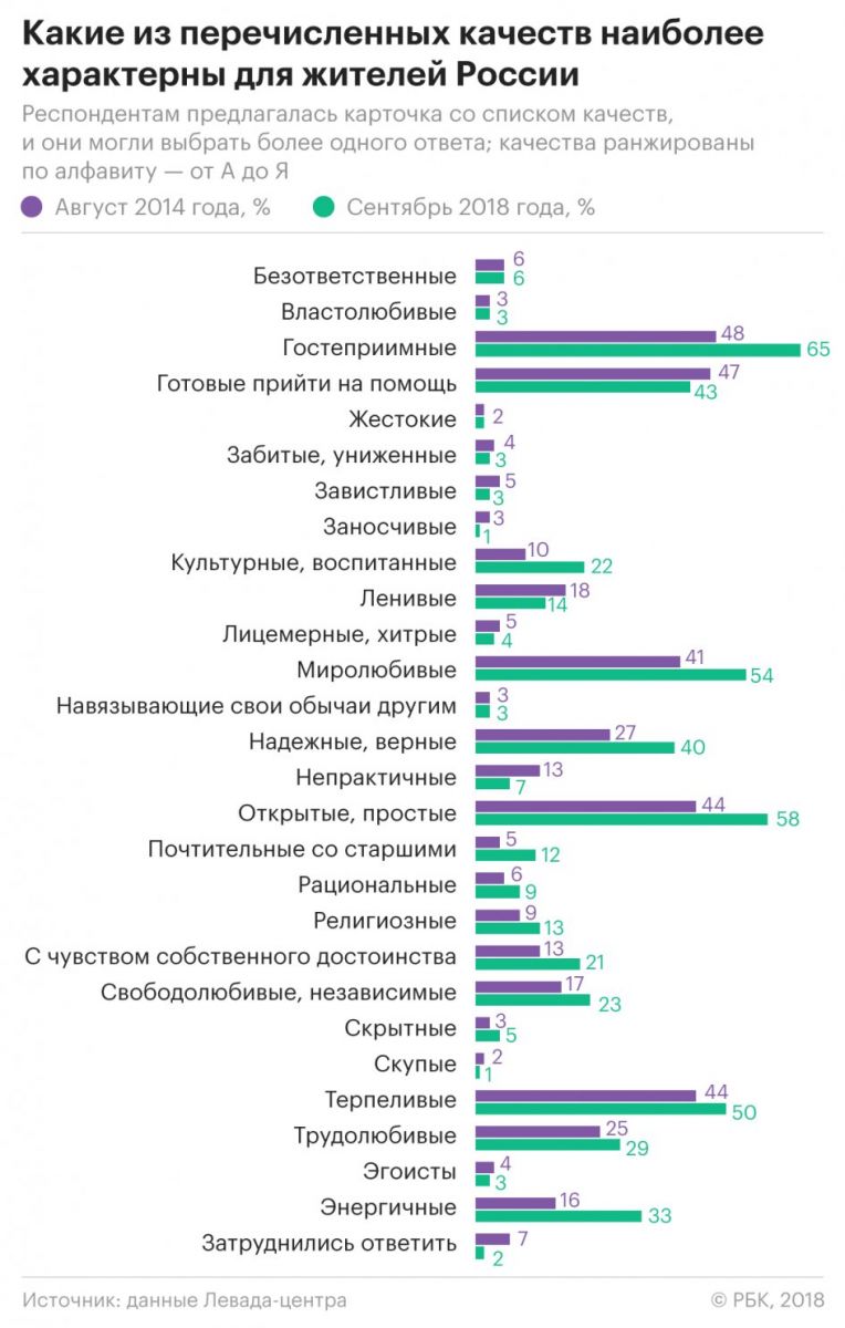 Отношение россиян к Украине, по данным социологов, существенно не изменилось. В сентябре 33% российских респондентов сообщили, что положительно относятся к нашей стране. Это на 1% выше аналогичного показателя в сентябре 2017 года. 30% сказали, что относятся к украинцам «в основном хорошо», еще 3% — «очень хорошо».