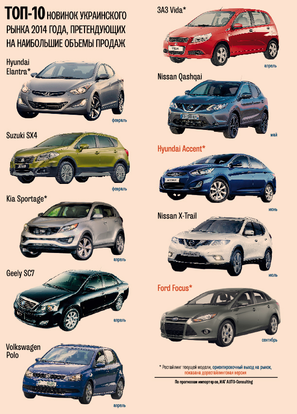 В нынешнем году на украинском рынке появится свыше 120 новых и обновленных моделей иномарок. Но самые ожидаемые Chevrolet Cobalt, Citroen C4L, которые дилеры обещали вывести еще в 2013 г., украинцы не увидят. Не будет и бюджетного седана Nissan Almera, выпускаемого в России.