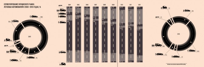 Как бы там ни было, в 2014 г. автомобили отечественной сборки продолжат доминировать в нижнем ценовом диапазоне (в первую очередь это класс B и в меньшей степени класс C), а иномарки — в среднем и верхнем.