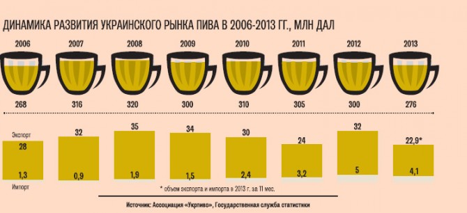 «Пиво — не продукт первой необходимости, поэтому многие от него отказываются. За 2013 г. рынок просел на 8 % — до 276 млн дал. Это рекордный спад за последние 10 лет», — указал собеседник.