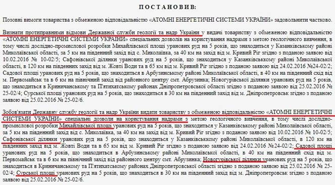 В этом случае Госгеонедра законно отказала АЭСУ в получении специальных разрешений, однако опять нарушила процедуру отказа. Это позволило государственному органу проиграть суд и отдать без аукциона в частные руки 5 самых больших месторождений урана практически бесплатно.