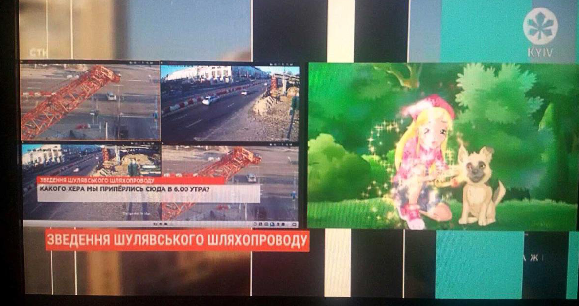 Так, в эфире телеканала «Киев» журналисты выразили своеобразный протест по поводу очередного обещания столичной мэрии - в титрах к сюжету о возведении Шулявского путепровода появилась надпись нецензурного содержания: «Какого…. мы приперлись сюда в 6.00 утра?».
