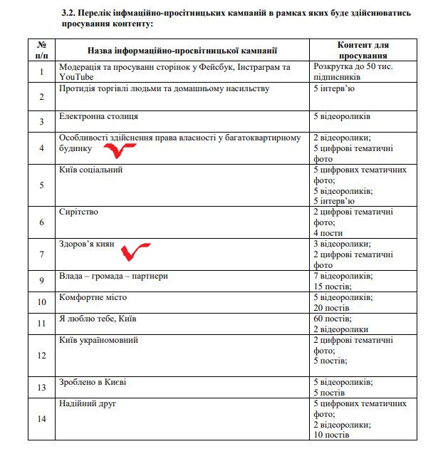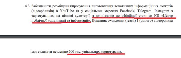 Как и в тендере на информкампанию по правам жителей многоэтажек, так и в тендере на просвещение киевлян по вопросам медицины, неизменным остается пункт шестой ТЗ о ботах — «Увеличение фолловеров, которые подписались на страницу КП „Центр публичной коммуникации и информации“ в Facebook, Instagram и YouTube».