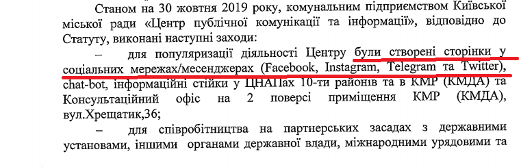 В сентябре Центр публичной коммуникации и информации Киевсовета пытался провести скандальный «тендер на ботов» за 2,5 млн. После того, как тема вызвала резонанс в СМИ, а широкая общественность возмутилась данным фактом, ЦПКИ отменил торги и даже сменил официального руководителя. Однако уже в октябре оказалось, что КП Киевсовета вовсе не отказалось от идеи продвигать свой Facebook и Instagram за деньги киевлян. Просто теперь, чтобы не дразнить общественность миллионными закупками, «большой» тендер поделили на маленькие, которые уже начали потихоньку проводить, не привлекая внимания СМИ.