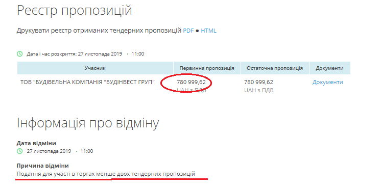 Таким образом, по итогам шести декабрьских тендеров Центр публичной коммуникации и информации Киевсовета заключил договоров на ремонт помещения по Б. Хмельнцкого, 26-Г на общую сумму в 1 039 556 грн, хотя в ноябре мог заключить один договор на весь комплекс строительных услуг с тем же «Будінвест Груп» за 781 тыс, сэкономив 259 тысяч гривен .