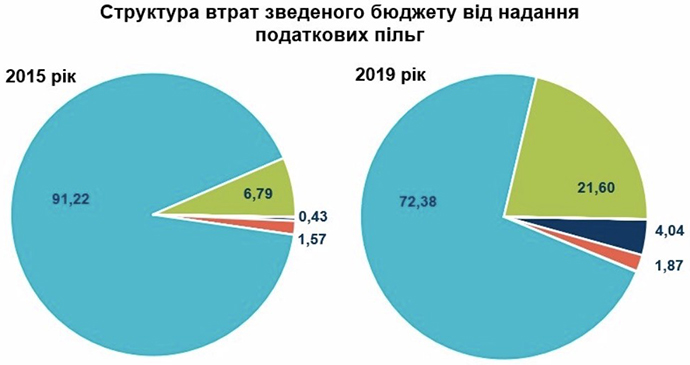 По данным ГНС, потери госбюджета от предоставления налоговых льгот увеличились с 19,9 мдрд. в 2017 году до 33,5 млрд. или 3,4% доходов бюджета в 2019 году, местных бюджетов — с 6,2 млрд. грн до 9,2 млрд грн. О каких льготах идет речь?