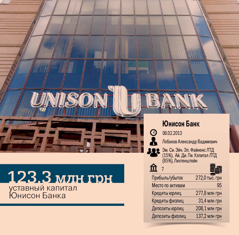 Первым на рынок в прошлом году вышел Юнисон Банк (Киев) — по данным регулятора, сейчас он 65‑й по размеру активов. Согласно информации на сайте финучреждения, его инвесторами выступили два европейских инвестиционных фонда — «Эм. Си. Эйч. Эл. Файненс ЛТД» (владеет 15 % акций банка) и «Ай. Ди. Пи. Кэпитал ЛТД» (85 %), которые зарегистрированы в Лихтенштейне. Председателем правления банка назначен экс-начальник департамента корпоративного бизнеса Дочернего банка Сбербанка России Александр Лобанов.