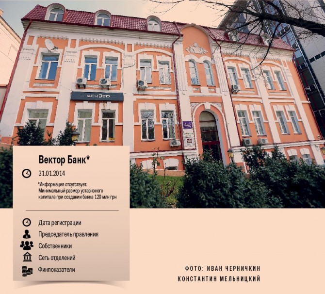 В конце января 2014 г. НБУ также выдал лицензию Вектор Банку, но какой‑либо информации о финучреждении пока нет.