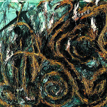 В работе американский экспериментатор Скарпитта вместо красок использовал чай и смолу. Картина продалась на Sotheby’s со значительным превышением стартовой цены.