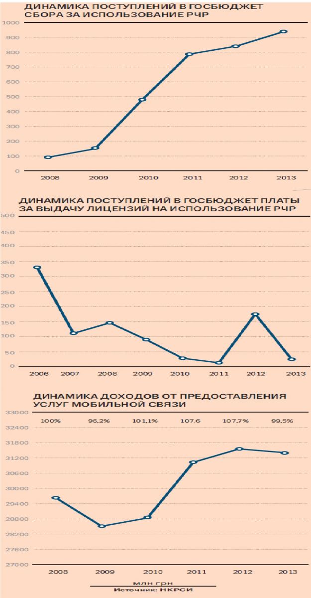 Для всех этих компаний сбор за РЧР теперь тоже увеличится в два раза. Но это, скорее всего, не заставит их инвесторов отказаться от эфира, так как в абсолютных цифрах эта плата все еще будет выглядеть мизерной по сравнению с теми деньгами, которые придется отдавать в бюджет мобильным операторам. Владельцы нишевого, но перспективного спектра сейчас платят за использование 1 МГц всего 10‑18 грн в месяц. Таким образом двукратное повышение для них ситуации в целом не изменит.
