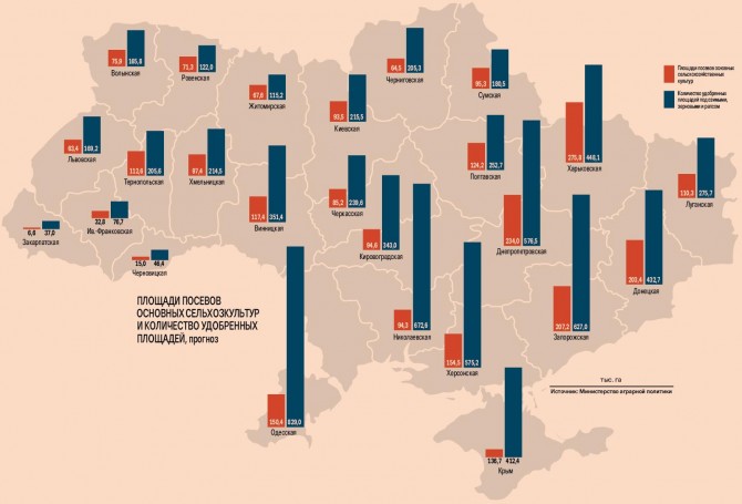Всего, по данным Минагрополитики, для проведения весенне-полевых работ в 2014 г. необходимо 42,8 млрд грн. «Это на 2,7 млрд грн больше, чем в 2013 г. и почти на 6 млрд грн больше потребностей 2012 г. без учета курсовых колебаний. С их учетом дополнительно нужно свыше 2 млрд грн», — говорит директор департамента финансово-кредитной политики Минагрополитики Баграт Ахиджанов. Увеличение затрат на посевную в аграрном министерстве объясняют ростом цен на топливо, семена и удобрения, расходы на которые составляют 72,6 % необходимых на посевную средств. Причем на эти цели в текущем году необходимо потратить на 2,5 млрд грн больше, чем в прошлом. На минудобрения понадобится 9,1 млрд грн (29,2 %), на топливо и посадочный материал — 6,5 млрд грн (около 21 %), на средства защиты растений — 4,3 млрд грн (13,8 %).