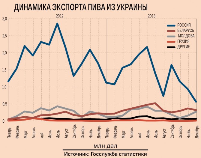 По данным Национального статистического комитета Беларуси, доля импортного пива в объеме продаж по итогам 2013 г. достигает 25 %. При этом основные поставщики напитка — Россия (75 %) и Украина (около 20 %). Пять лет назад доля импортеров была выше — 35 %. Но в 2010‑2012 гг. украинских пивоваров обвинили в демпинге и заставили импортеров получать лицензию. После проведения антидемпингового расследования, которое не выявило признаков торговли по низким ценам, лицензирование было отменено. Но в прошлый раз Беларусь не устанавливала минимальные отпускные цены.