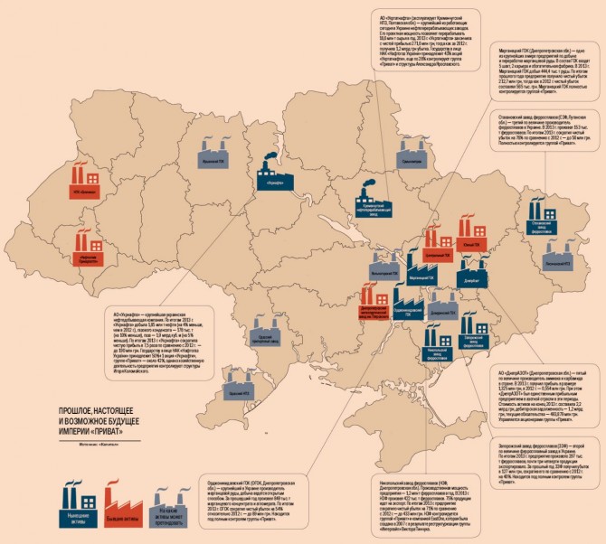 Владельцы группы «Приват» всегда демонстративно дистанцировались от любой власти, но тем не менее умудрялись при каждой из них постоянно расширять свои активы. При Леониде Кучме они активно участвовали в приватизации активов горно-металлургического комплекса (ГМК) и нефтеперерабатывающих заводов, при Викторе Ющенко — достроили свою ферросплавную империю и стали зариться на базовые активы в большой химии, и что немаловажно, сумели лучше всех украинских финансово-промышленных групп (ФПГ) распорядиться горно-металлургическими активами. В годы правления Виктора Януковича «Приват» успешно сохранил свои позиции. В период нынешнего межвластия человек, с которым чаще всего ассоциируют эту группу, приобрел официальный статус лица государственного — губернатора родной ему Днепропетровской области.