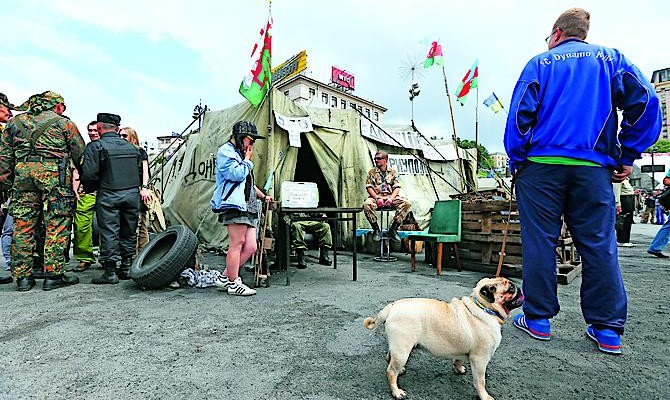 Последнее Народное вече на столичном Майдане Незалежности состоялось еще 14 апреля и было посвящено единству Украины. Вчера же на этом месте собрались около двух тысяч человек, чтобы обсудить будущее палаточного городка и баррикад в центре Киева.