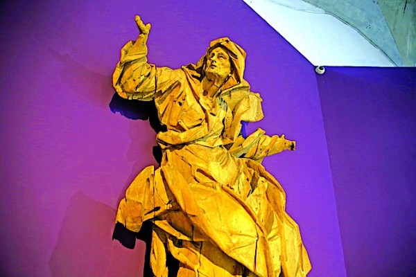 Одним из ключевых блоков в выставке стала большая экспозиция украинского сакрального искусства различных стилей и эпох. В частности, работы известнейшего представителя галицкой иконописной школы эпохи Ренессанса Федуско Самборского, иконы XVII‑XVIII вв. из Музея волынской иконы и 19 уникальных ликов из иконостаса козелецкого собора Рождества Пресвятой Богородицы эпохи украинского барокко. Еще одна гордость экспозиции — деревянные скульптуры Иоганна Георга Пинзеля XVIII в., часть которых продемонстрировали в начале этого года в парижском Лувре.