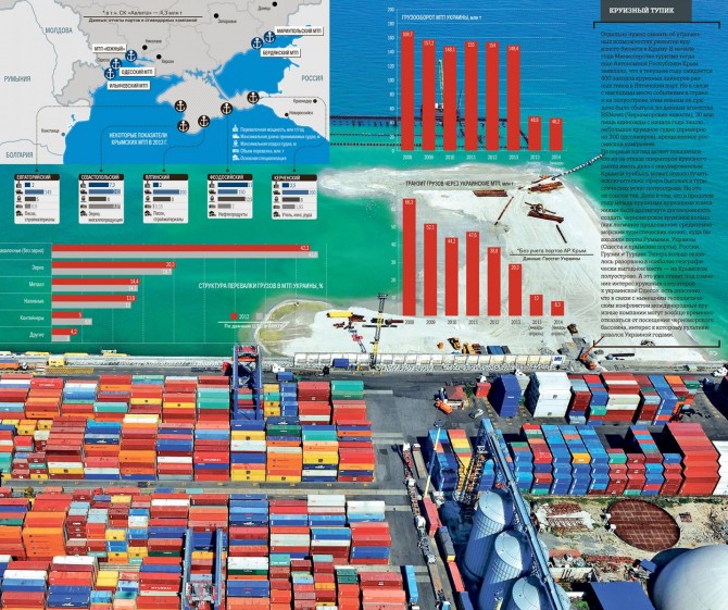 До недавних событий совокупная доля всех украинских портов в грузообороте Азово-Черноморского бассейна доходила до 35 % (в прошлом году, несмотря на снижение морского грузооборота, она составила около 33 %, при этом до 2 % грузооборота бассейна обеспечивал Крымский полуостров). Пока Украина сохраняет свои экспортные и транзитные возможности. И более того: по расчетам специалистов, потенциальный объем грузопотоков, которые могут быть привлечены в украинские порты, составляет до 250 млн т.