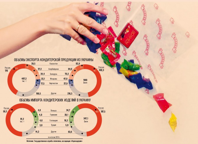 Россия — лидер по потреблению украинских конфет. Она не сдала свое место даже после 29 июля, когда запретила поставки на свою территорию кондитерских изделий фабрики Roshen. Однако это табу частично ощутил на себе украинский рынок. Roshen не нашла новые рынки сбыта и вынуждена была закрыть фабрику в Мариуполе.