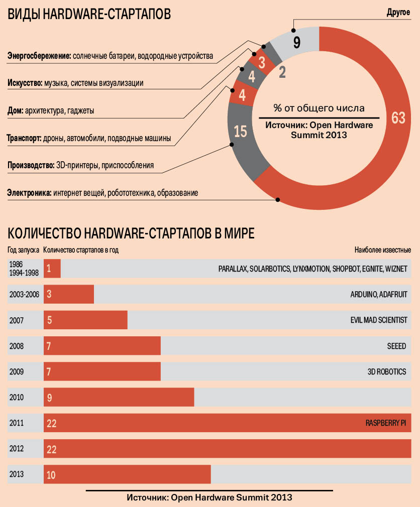 Александр Нестеренко разделяет все мировые hardware-проекты на две категории: «полезные или фановые штуки» и «прорывные технологии». Чтобы реализовывать первые, достаточно иметь фантазию, предпринимательскую жилку и толкового инженера в команде (механика, электронщика, программиста и т. д.), говорит Нестеренко. По-другому обстоят дела с проектами уровня «прорывные технологии». Обычно такие проекты рождаются в недрах университетов, лабораторий и подобных организаций научной экосистемы. Для их развития нужны фундаментальные исследования, дорогостоящие опыты, площадки для обмена мнениями между мировыми научными светилами.