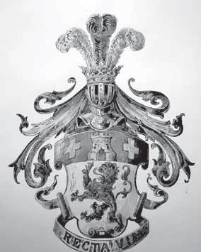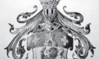 62‑летний коммерсант и благотворитель в 1881 году был удостоен дворянского титула, а спустя три года — герба. «В золотом щите червленый лев, — говорилось в описании герба. — В лазоревой главе щита зубчатая башня с открытыми воротами и двумя окнами, сопровождаемая двумя таковыми же греческими крестами. Щит украшен дворянским коронованным шлемом. Нашлемник: три страусовых пера, среднее — червленое, а крайние — золотые».