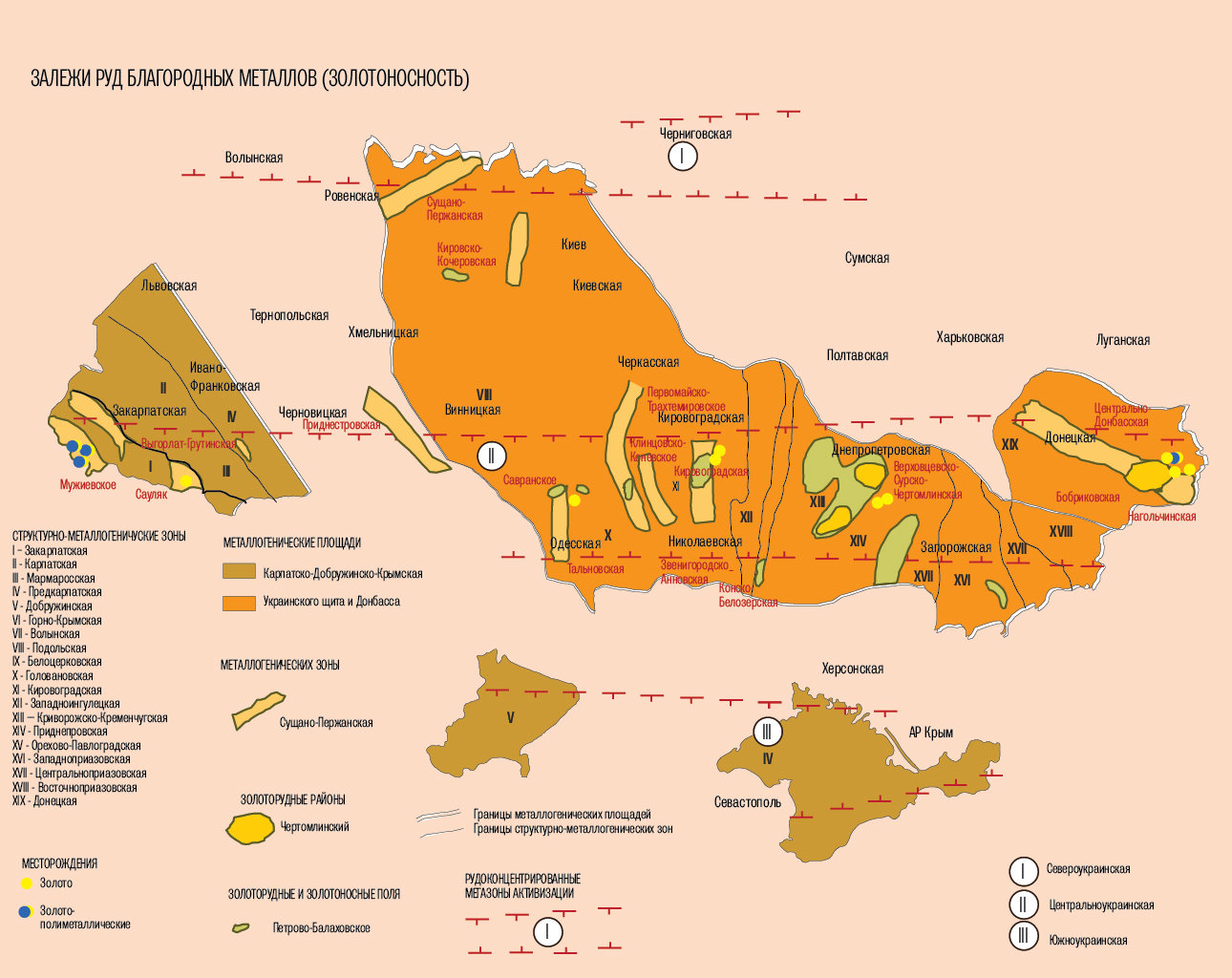 В недрах нашей страны сосредоточено около сотни видов полезных ископаемых, рыночная стоимость которых, по подсчетам ученых, оценивается в $ 7,5 трлн. В общей сложности минерально-ресурсная база Украины составляет 20 тыс. месторождений и рудопроявлений, из которых 7,8 тыс. разведанных и только 3,3 тыс. разрабатывается. Традиционно украинские предприятия добывают железные, марганцевые, урановые, ильменитовые руды, уголь, природный газ, нефть (а также конденсат), циркон, каолин (и глины), соли, графит, нерудное сырье для металлургии, облицовочные и строительные камни, минеральные воды, благородные и цветные металлы.