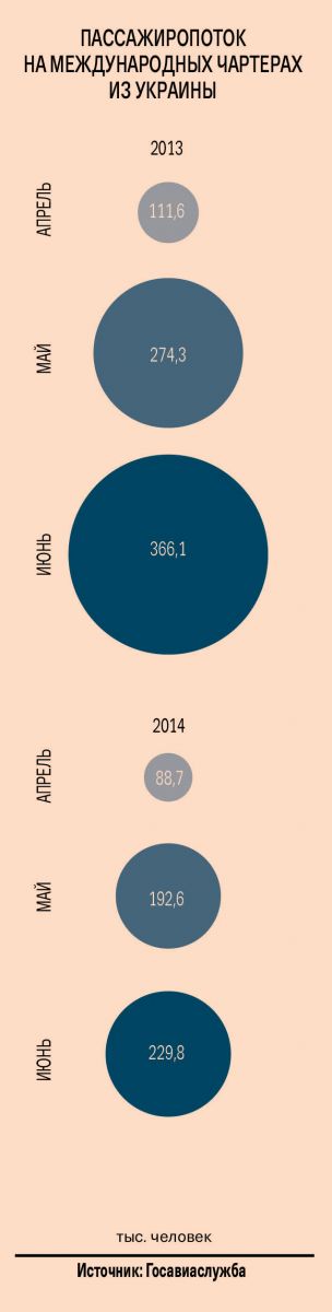 Серьезную конкуренцию чартерам оказывают псевдолоукостеры (перевозят большую долю туристов от туроператоров), как то flydubai, Vueling и т. д., говорит директор консалтинговой компании Friendly Avia Support Александр Ланецкий. Эта тенденция вместе с падением платежеспособности привела к обвалу спроса на чартерные перевозки. По данным Государственной авиационной службы, за январь-июнь 2014 г. услугами украинских авиа­компаний воспользовались 815,8 тыс. человек, что на 21,1 % меньше, чем за аналогичный период прошлого года.