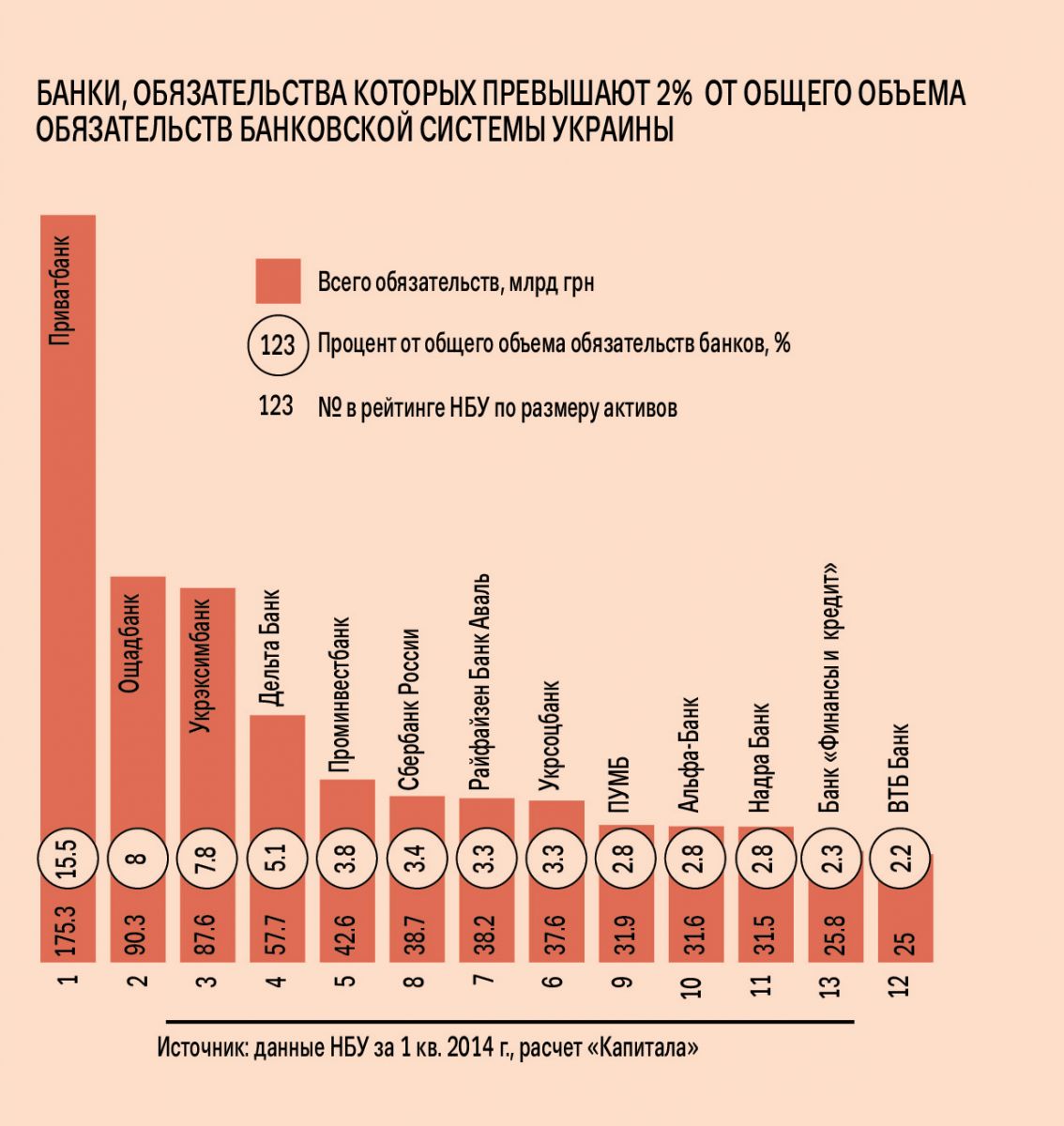 В зоне риска также другие крупные игроки. К примеру, испытывает трудности Надра Банк, контролируемый Дмитрием Фирташем. Как ранее сообщал «Капитал», банк не может похвастаться прибыльностью и до сих пор не приступил к погашению старых обязательств по рефинансированию. В 2014 г. это финучреждение вновь получило финансирование от НБУ в связи с оттоком депозитов на сумму около 2,5 млрд грн.
