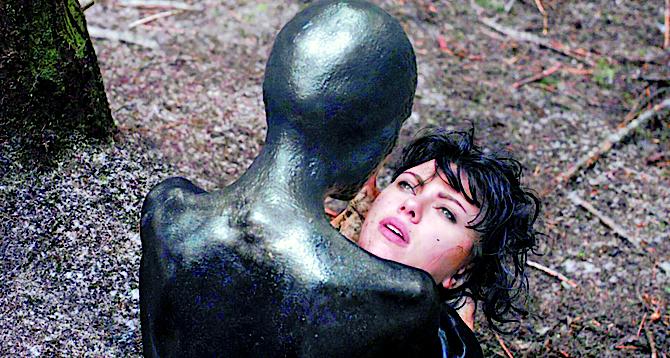 Пришельца играет Скарлетт Йоханссон. Одетая в шубу из искусственного меха и джинсы-варенки в обтяжку, в черном парике и с красной помадой на губах, она сидит за рулем фургона и подбирает на дороге одиноких мужчин. Затем соблазняет и приводит в свой дом, где их ждет смерть, а не то, на что они рассчитывали. У героини Йоханссон нет ни имени, ни эмоций — по крайней мере, поначалу. Ее не трогает ни плач оставшегося без родителей ребенка, ни вид человеческой крови. Даже раздевается перед мужчинами она совершенно хладнокровно и безучастно. «Я подумала, что будет ужасно интересно сыграть персонажа, у которого нет ни суждений о происходящем, ни эмоций», — объясняет актриса, почему согласилась сниматься в этом низкобюджетном (бюджет «Побудь в моей шкуре» составил всего $ 13,3 млн) независимом фильме. Впрочем, ближе к финалу в ее героине появляются очень человечные жалость и любопытство к себе и окружающему миру, но ни к чему хорошему это не приводит.