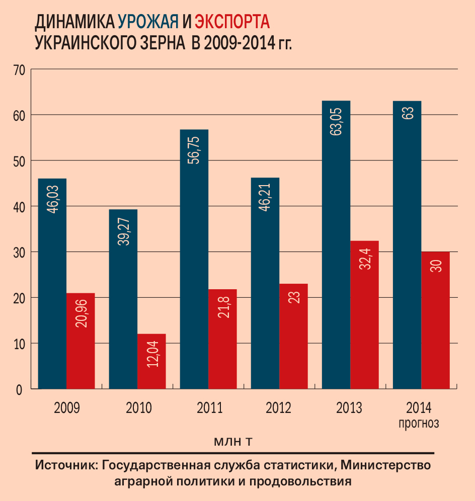 Несмотря на опасения, аграрии смогут поставить очередной рекорд. Уже собрано 34,7 млн т зерна с 9,5 млн га, свидетельствуют данные Министерства аграрной политики и продовольствия. «Сегодняшний урожай по объемам будет больше, чем прошлогодний. Невзирая на то что у нас есть оккупированная крымская территория и частично потеряны угодья в Луганской и Донецкой областях», — заявил на брифинге министр аграрной политики и продовольствия Игорь Швайка. Согласно прогнозам погодных специалистов, урожай зерна составит 63 млн т, как и в 2013 г. «В этом году мы ожидаем рекордный сбор подсолнечника, высокий урожай пшеницы и кукурузы», — отметил директор Украинского гидрометео­рологического центра Николай Кульбида. По его словам, чрезвычайных погодных условий на период сбора урожая не ожидается. В прошлом году показатели были скромнее: на этот же период с 10,4 млн га убрали 32 млн т зерна.