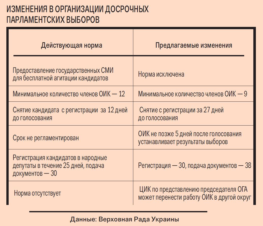 Вчера народный депутат Давид Жвания (внефракционный) передал в парламентский комитет по вопросам государственного строительства и местного самоуправления, председателем которого он является, законопроект об организации и проведении выборов народных депутатов. Документ, в частности, предоставляет Центральной избирательной комиссии (ЦИК) возможность изменять в Донецкой и Луганской областях границы одномандатных округов и их центров по рекомендации председателей областных государственных администраций (ОГА). Также по представлению глав ОГА комиссия сможет переносить работу окружных избирательных комиссий (ОИК) на территории других округов и в другие области страны.