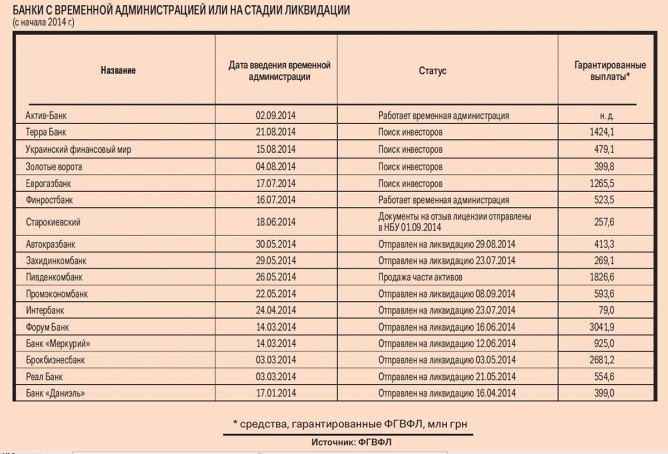 Но и этих денег будет недостаточно для выплат. Недавно в НБУ признались, что с начала года ввели кураторов в 32 финучреждения. Но с выплатами проблем быть не должно, заверила председатель Национального банка Валерия Гонтарева. «Мы получили $ 500 млн от Всемирного банка. Эти деньги направлены исключительно на пополнение средств Фонда гарантирования вкладов», — сказала она. Также она сообщила, что в начале 2015 г. Украина получит еще один транш для ФГВФЛ.