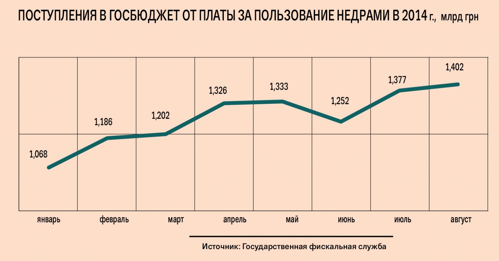 1,402 млрд грн перечислено в госбюджет в виде платы за недропользование. Несмотря на существенное повышение налога, эти поступления выросли лишь на 25 млн грн