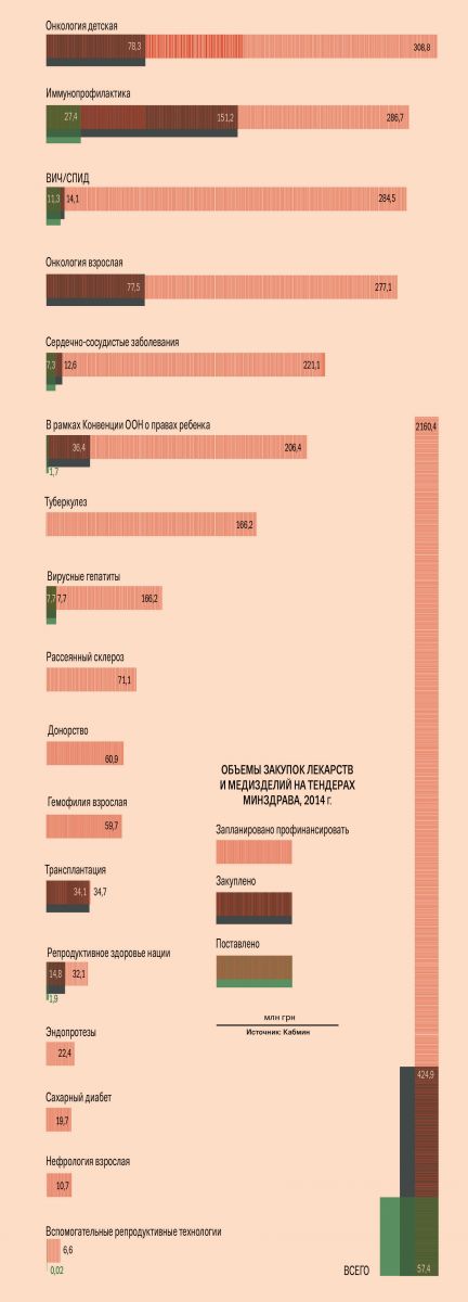 Сказалось отсутствие до мая казначейских программ, а также аннексия Крыма и вооруженные столкновения в Донбассе. Сложно было собрать информацию из регионов о том, сколько и какие лекарства необходимо закупать.