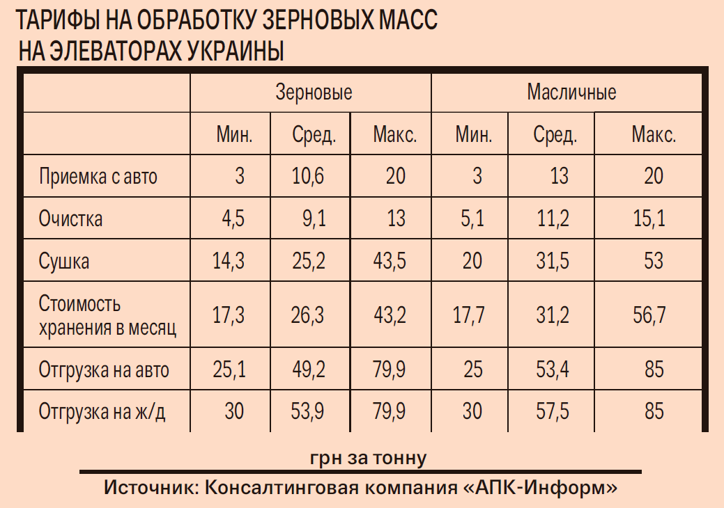Крупные трейдеры заинтересованы в собственной логистике, чтобы не платить за аренду элеваторных мощностей. Начальник отдела логистики компании «Гермес-Трейдинг» Вячеслав Сорокун рассказывает, что небольшие компании, которые обрабатывают земельные участки свыше 1 тыс. га, устанавливают зерносушилки. «Это дает им возможность не сдавать зерно на элеваторы, а довести его до нужной кондиции и продать подороже в благоприятный период», — говорит он. По словам Купченко, сушка зерна на элеваторе — одна из самых дорогих операций. В среднем при снижении влажности на 1 % за обработку тонны зерновых нужно заплатить 25,2 грн, а масличных — 31,5 грн.