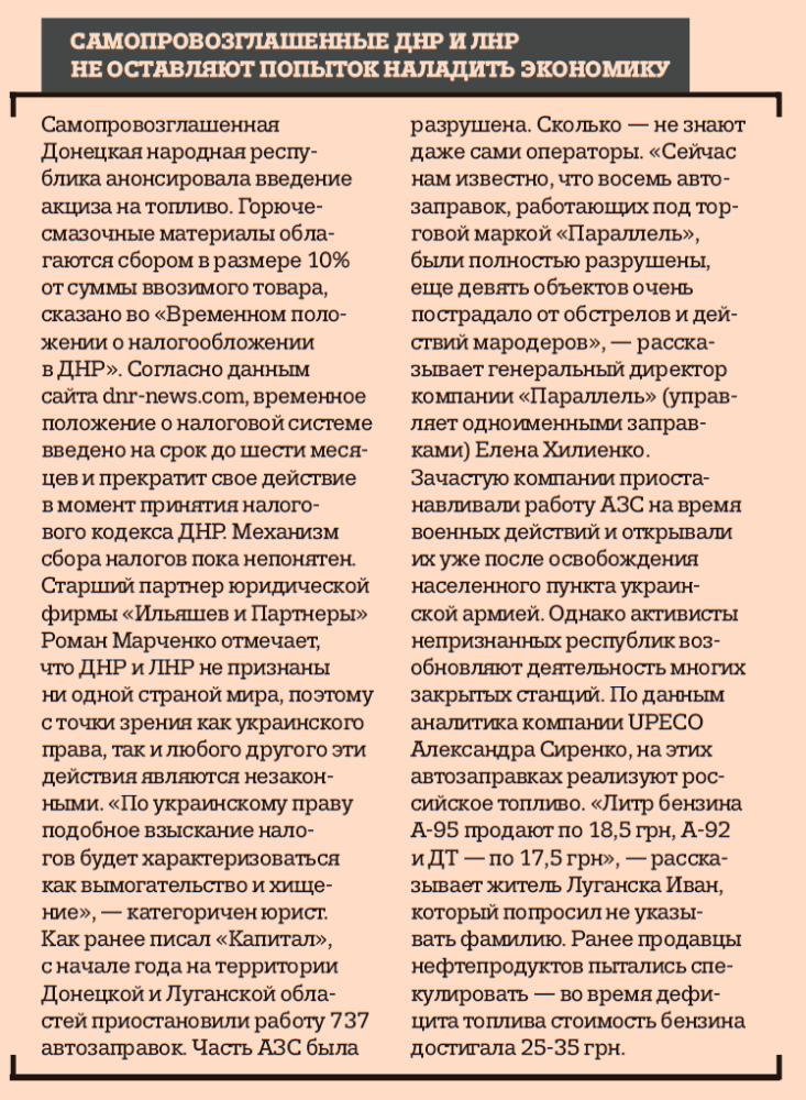 Курсовые колебания усугубляются дефицитом валюты. Как ранее писал «Капитал», официально купить доллары или евро можно через торги Нацбанка или попросить банк приобрести валюту на межбанковском валютном рынке. Но предложение валюты ограничено. Курс, по которому топливным ритейлерам удается приобрести доллар, выше межбанковского на 20‑30 коп. за доллар. «В нефтяном рынке очень важен объем оборотных средств — чем большими средствами вы оперируете, тем больше вы можете заработать», — отметил финансовый директор сети автозаправок КЛО Владислав Стремидловский.