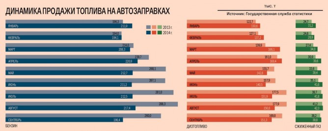 Розничная реализация сжиженного газа за этот же период, по данным Госстата, выросла на 14,6 % до 338,6 тыс. т. «На некоторых автозаправках нашей сети в сентябре объем розничной реализации сжиженного газа вырос более чем в три раза», — заключает генеральный директор компании «Параллель» (управляет одноименными заправками) Елена Хилиенко.
