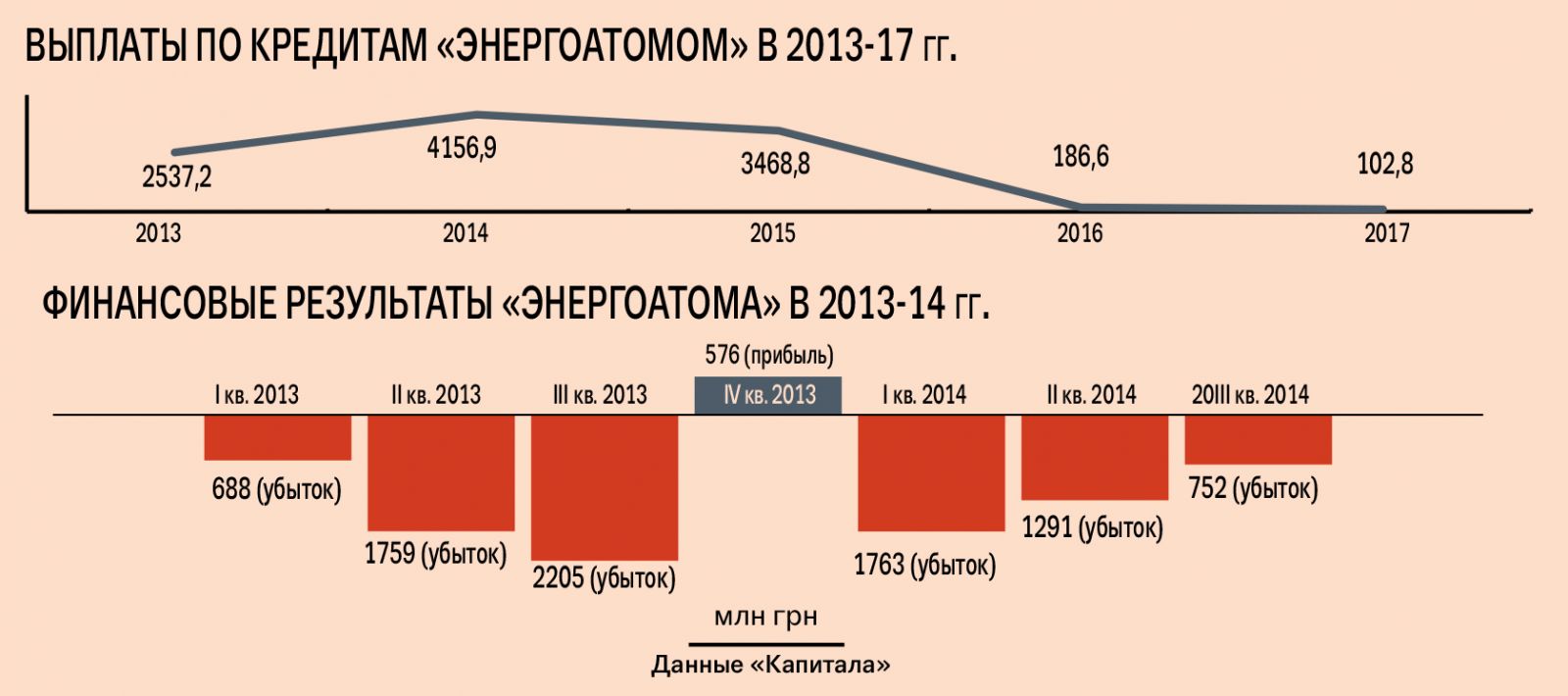 По словам Ольги Кошарной, в последние годы «Энергоатом» из‑за долгов испытывал существенные кассовые разрывы и был вынужден для их покрытия привлекать краткосрочные кредиты. В частности, в отчетности «Энергоатома» указано, что только в прошлом году он привлек 5 кредитов на 1 год каждый на сумму 1,9 млрд грн по ставкам 10,5‑18 % годовых. Таким образом, только в текущем году «Энергоатом» должен погасить 4,2 млрд грн. В следующем году выплаты по кредитам могут возрасти. По данным на начало октября, «Энергоатом» должен будет выплатить в 2015 г. 3,5 млрд грн. Однако до конца года кредитная нагрузка может возрасти — в середине октября «Энергоатом» объявил о привлечении еще двух кредитов сроком на 1 год на сумму 900 млн грн.