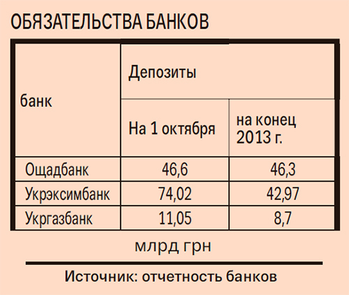 Выручает банки то, что у них пока нет больших проблем с ликвидностью. Например, показатель текущей ликвидности Укрэксимбанка на 1 октября составил 103 %. За девять месяцев финучреждению удалось нарастить объем депозитов почти вдвое, до 74,02 млрд грн. Основные поступления были от юридических лиц, сумма депозитов которых с начала года увеличилась более чем в два раза, до 54,17 млрд грн. Укргазбанк по итогам девяти месяцев также нарастил депозитный портфель — с 8,6 млрд грн до 11,05 млрд грн. Ощадбанк — единственный из трех банков, у кого был отток депозитов населения. В общей сложности вкладчики забрали из Ощадбанка почти 2 млрд грн.
