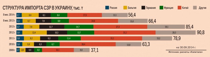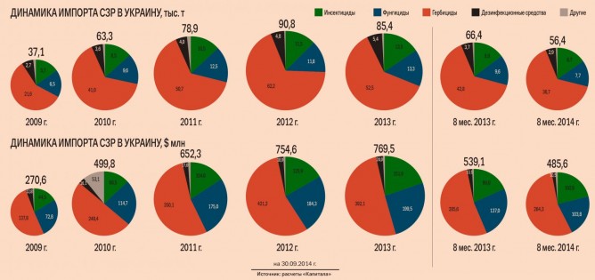 В прошлые годы СЗР везли в основном из Евросоюза и Китая. «За восемь месяцев 2014 г. на страны ЕС пришлось 54 % от общего объема импорта в физических показателях, — рассказывает Куценко. — На втором месте КНР — с 31 %-й долей в импорте». Внутреннее производство средств защиты растений в Украине представлено лишь двумя предприятиями — ООО «Черкасская фабрика агрохимикатов» (принадлежит ООО «Компания «Укравит») и ООО НПП «Заря» (ее контролирует ООО «Агрохимикат»).
