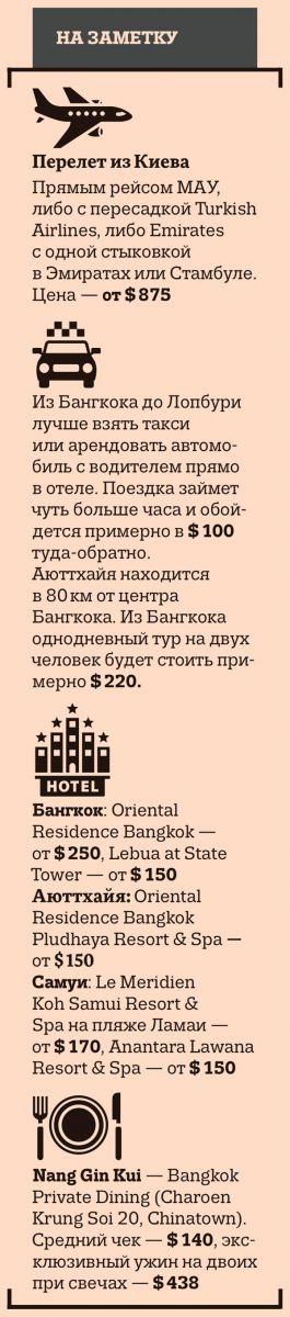 Древняя столица Таиланда Аюттхайя — хорошая альтернатива природным естественным красотам, тем более что она исторически связана с Лопбури и находится недалеко. Город по‑прежнему остается самым интересным местом в Центральном Таиланде, здесь сосредоточена самая большая концентрация кхмерских и буддистских храмов в стране. Центр Аюттхайи — огромный исторический парк, над которым в 1991 году взяло шефство ЮНЕСКО. Многие из древних храмов разрушены, но то, что сохранилось, впечатлит даже видавших виды. Торчащие из земли громадные конусообразные чеди (их еще называют ступами, по форме они напоминают колокол) и в упор рассматривающие вас каменные божества никого не оставят равнодушным. Без поездки в древнюю столицу путешествие в Таиланд будет неполным, туристический градус здесь один из самых высоких в стране.
